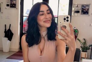 The Thai K-pop mega star ventured out into the frozen tundra in her Nike x NOCTA x Chrome Hearts puffer jacket and matching pants and unzipped her coat to reveal her slim figure in a skimpy bikini top.