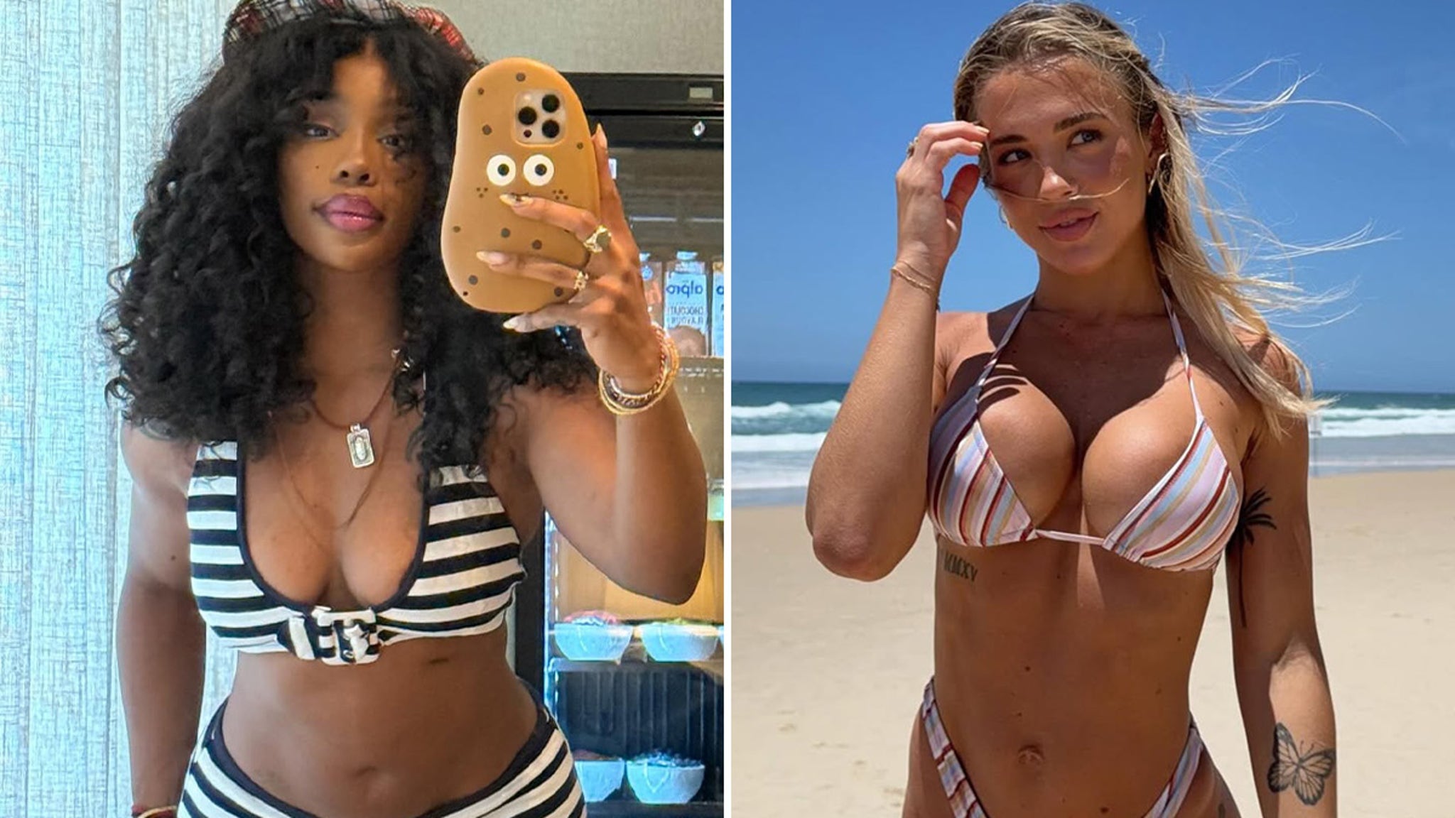 Thirsty Thursday never felt so good … SZA and Tammy Hembrow both rocked striped bikinis, but which lucky lady is grabbin’ hold of your vote?! The question here is: Who’d You Rather?! VOTE NOW!