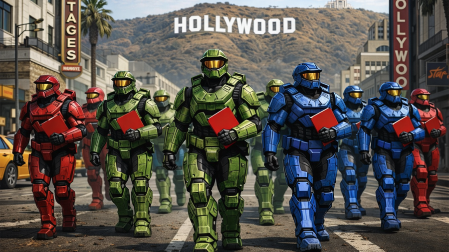 To up the ante, CAA and Microsoft put together one of the biggest pitch events in the history of Hollywood, something that’s still never been topped. They hired actors, then dressed them in Spartan armor like that worn by Halo’s main character, Master Chief, and sent them to pick up and deliver scripts to major Hollywood studios. Around midday on June 6th, 2005, these fully outfitted, script-bearing Master Chiefs marched through the streets of Hollywood in costume and arrived at the studios in red, blue, and green Spartan armor.