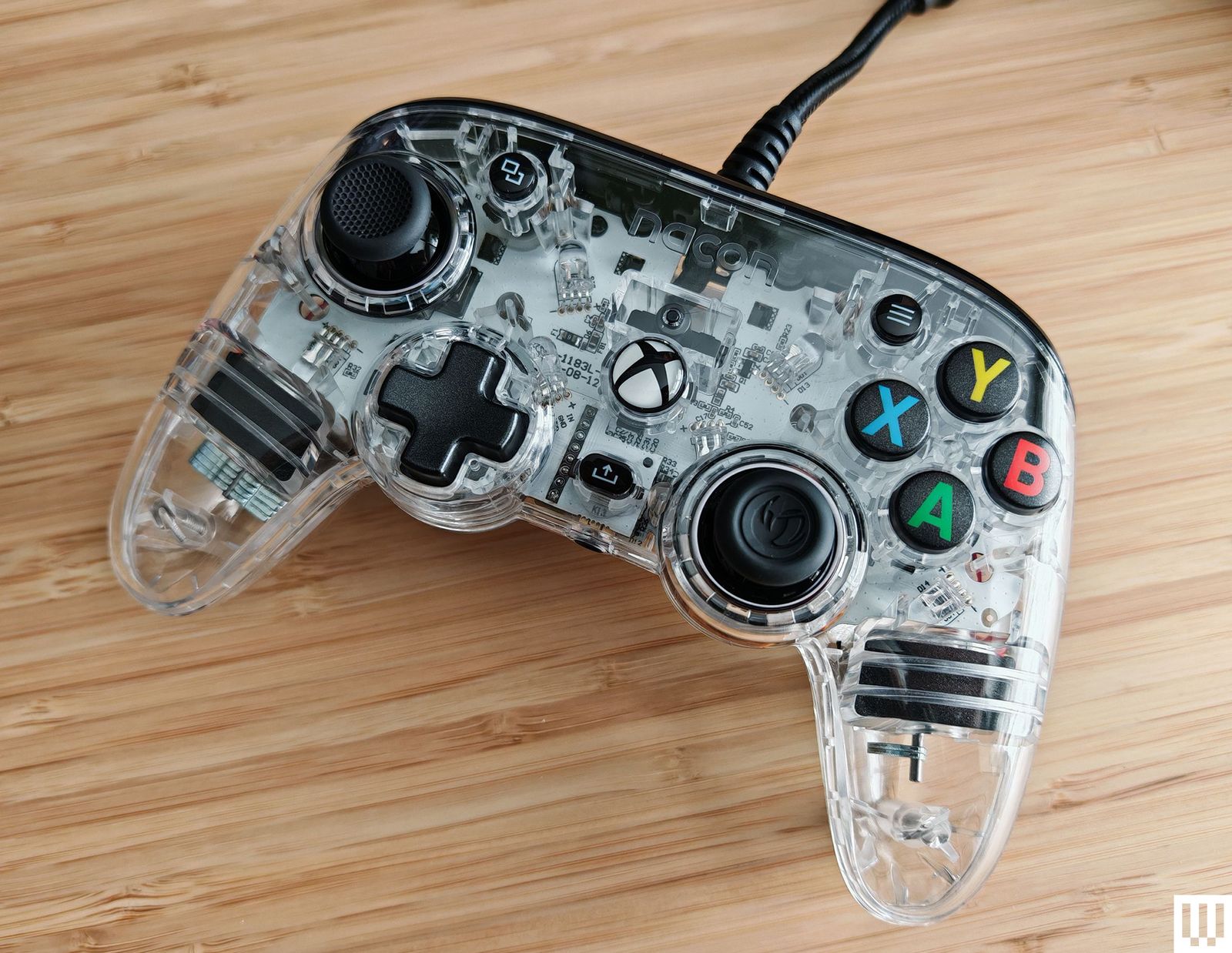 Nacon Revolution X Pro: This wired Xbox and PC controller comes with a long (around 10 feet), detachable, braided USB-C cable. Nacon offers an impressive level of customization, including interchangeable thumbsticks, programmable back buttons, and weights to help you get the feel you want. The Profile button lets you cycle through four presets, a switch toggles configurations, and it has a 3.5-mm headphone jack. You can tweak everything in the flaky Revolution X app for Xbox or PC. While it works well, I don’t love the cheap feel (even with adjusted weight), and the rear triggers are awkward. At full price, the Revolution X Pro is too expensive for a wired controller, but discounts are frequent.