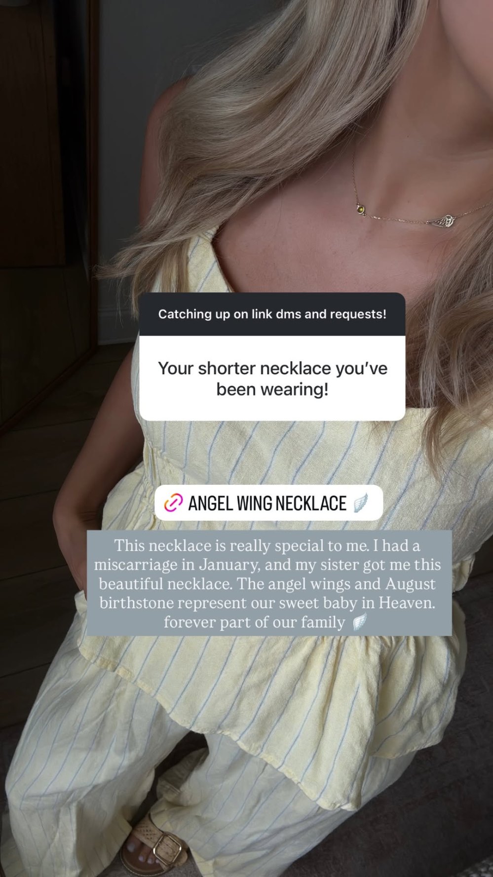 She continued, “The angel wings and August birthstone represent our sweet baby in heaven [who is] forever a part of our family.”
